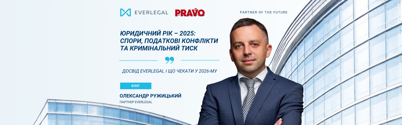 In an article for Legal Practice (Yurydychna Praktyka), EVERLEGAL Partner Oleksandr Ruzhytskyi analyses the key trends of the legal market in 2025, shares the team’s experience in complex disputes and criminal defence of businesses, and outlines expectations for 2026.