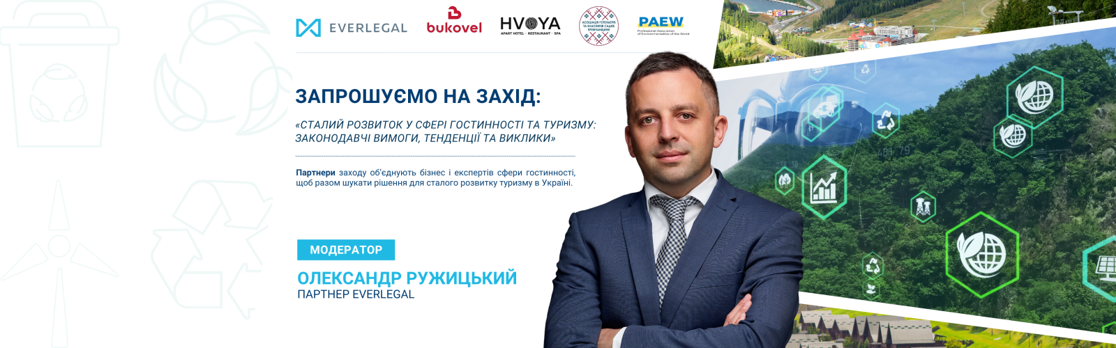 Партнер EVERLEGAL виступить у ролі модератора на заході «Сталий розвиток у сфері гостинності та туризму: законодавчі вимоги, тенденції та виклики»